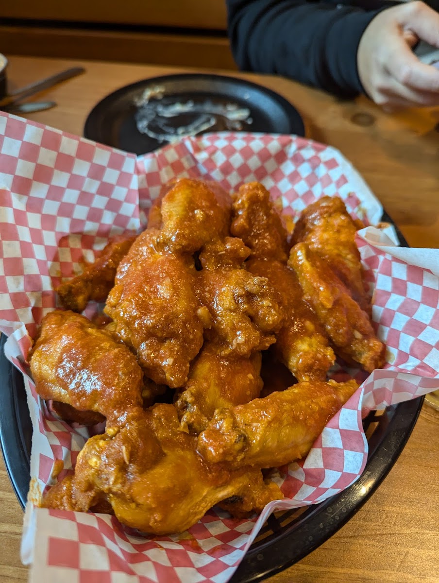 Atmosphere was cool, service was good. Wings had potential (a good size with crispy skin) but the sauce was so bland. I tried mango habanero first which was not spicy at all (disappointing) and then asked for a side of ghost pepper which was also not spicy at all (it legit tasted like BBQ sauce). Overall I didn’t hate it, but I wouldn’t order wings here again.